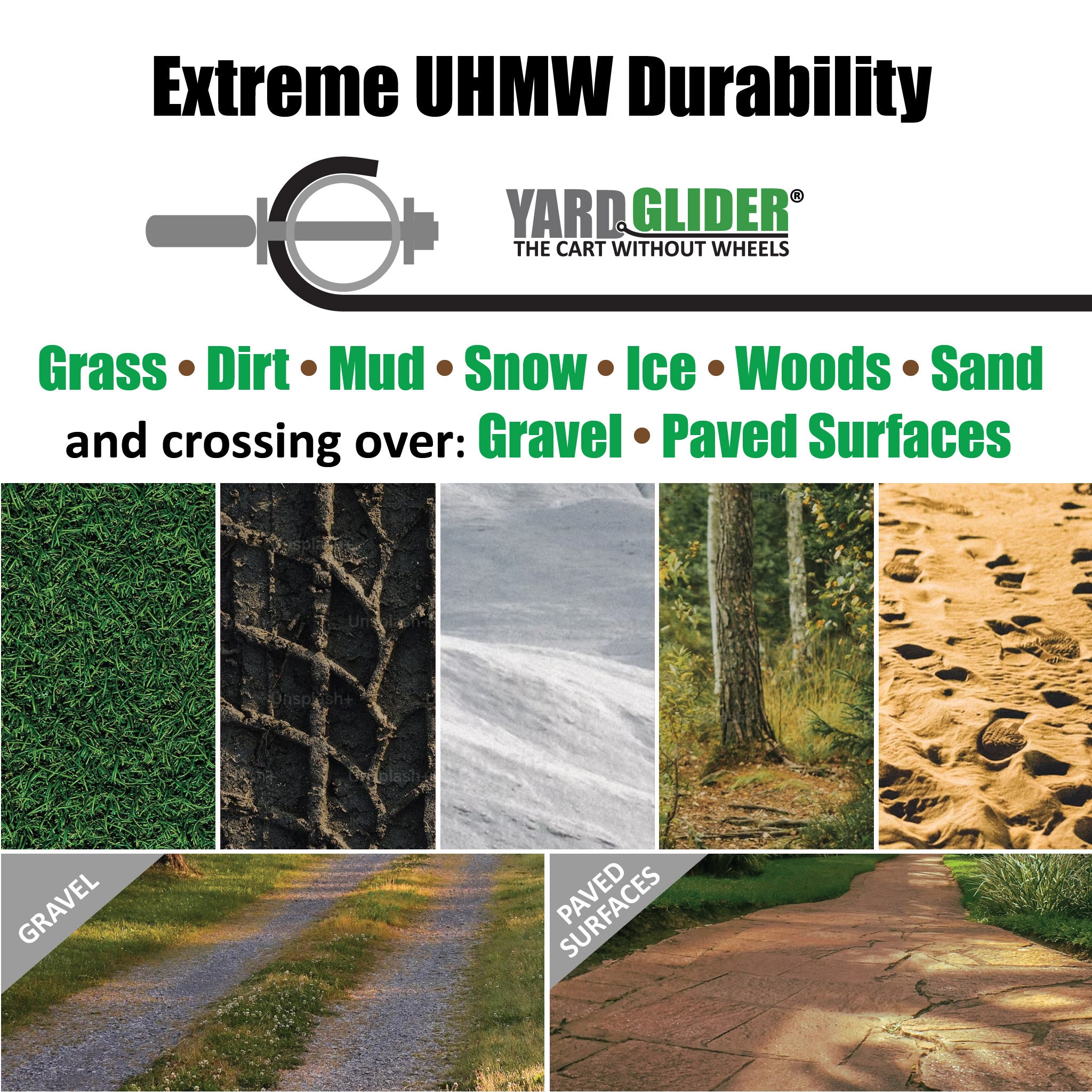 It's the same class of material trusted in the most demanding industrial applications, now engineered into our most capable Yard Glider. For professionals who push their equipment to the limit, this is the uncompromising choice for performance on any surface, including frequent crossing of concrete and gravel.